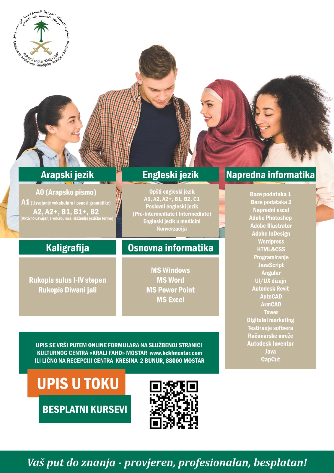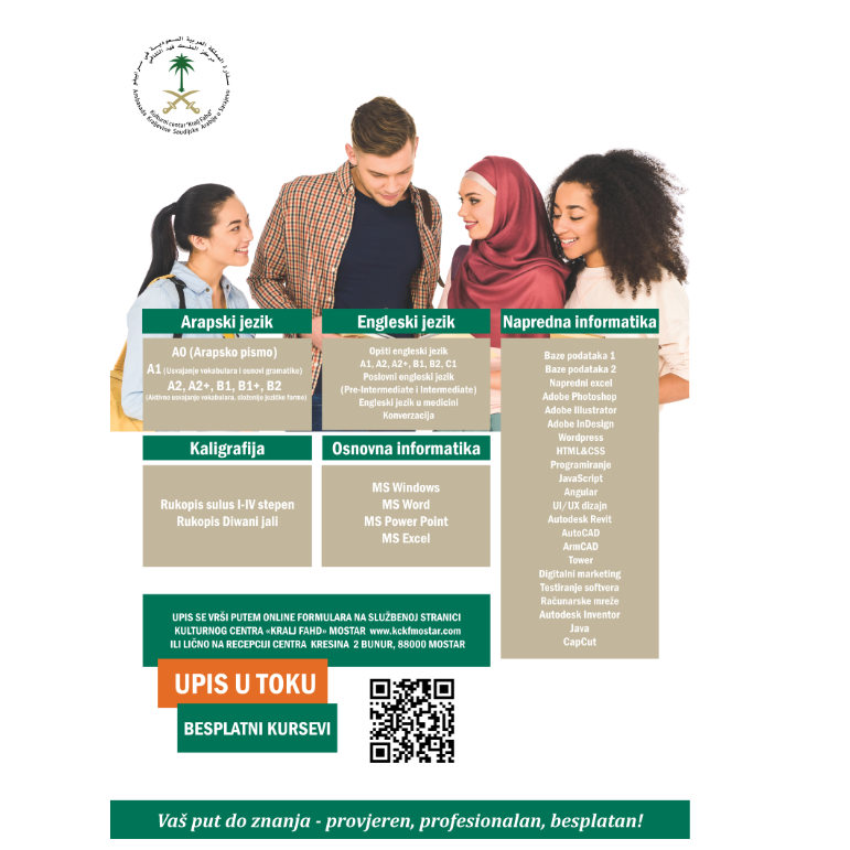 Upis na besplatne certificirane kurseve iz arapskog jezika, engleskog jezika, kaligrafije i informatike za odrasle je u toku!