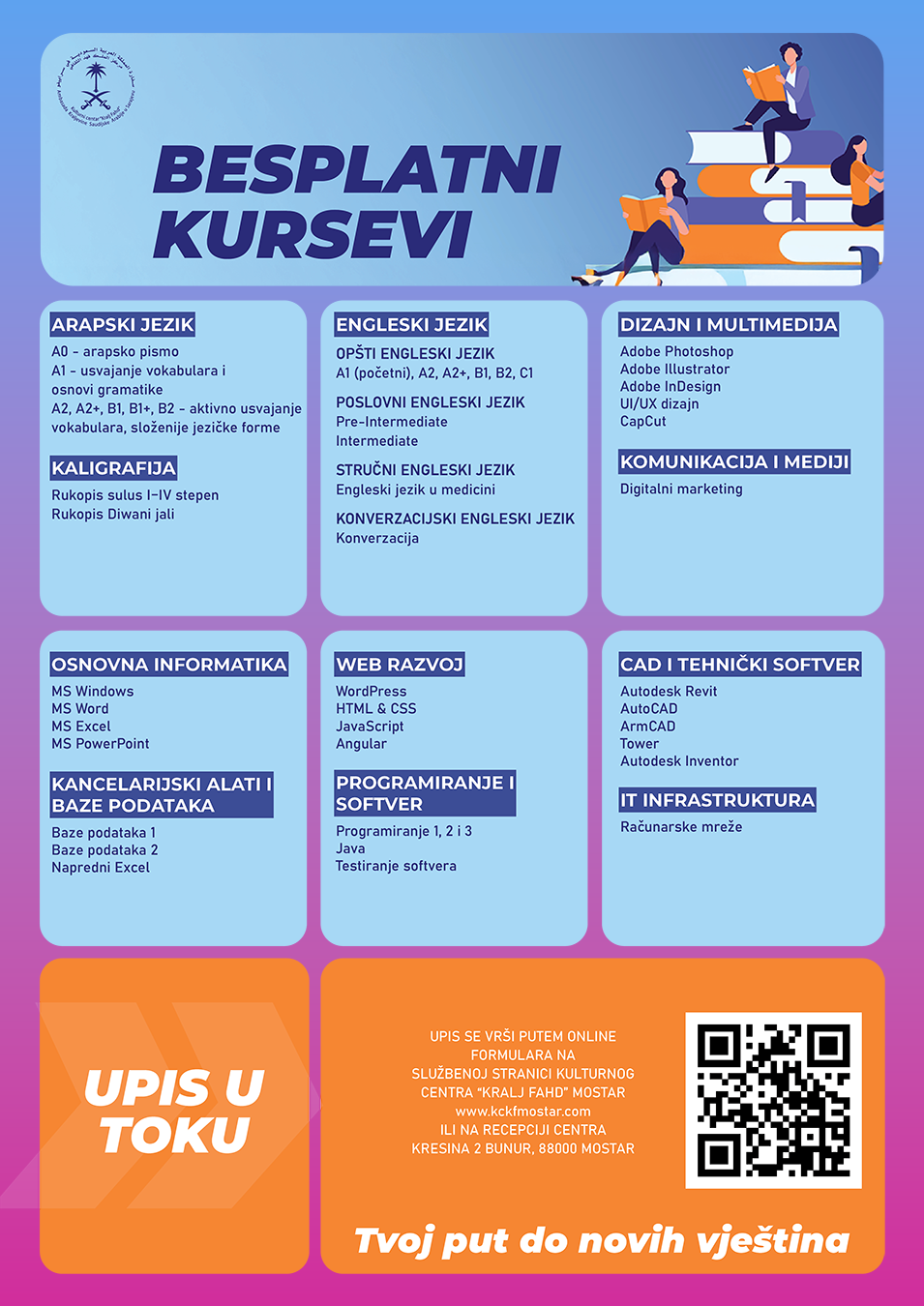već pohađali kurseve kod nas), potrebno je da se prijavite preko linka:https://kckraljfahd.com/prijava/mostar, odaberite