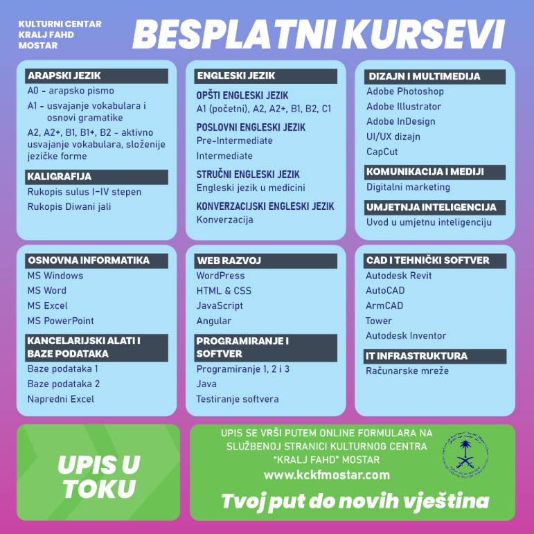 UPIS NA BESPLATNE KURSEVE U TOKU !