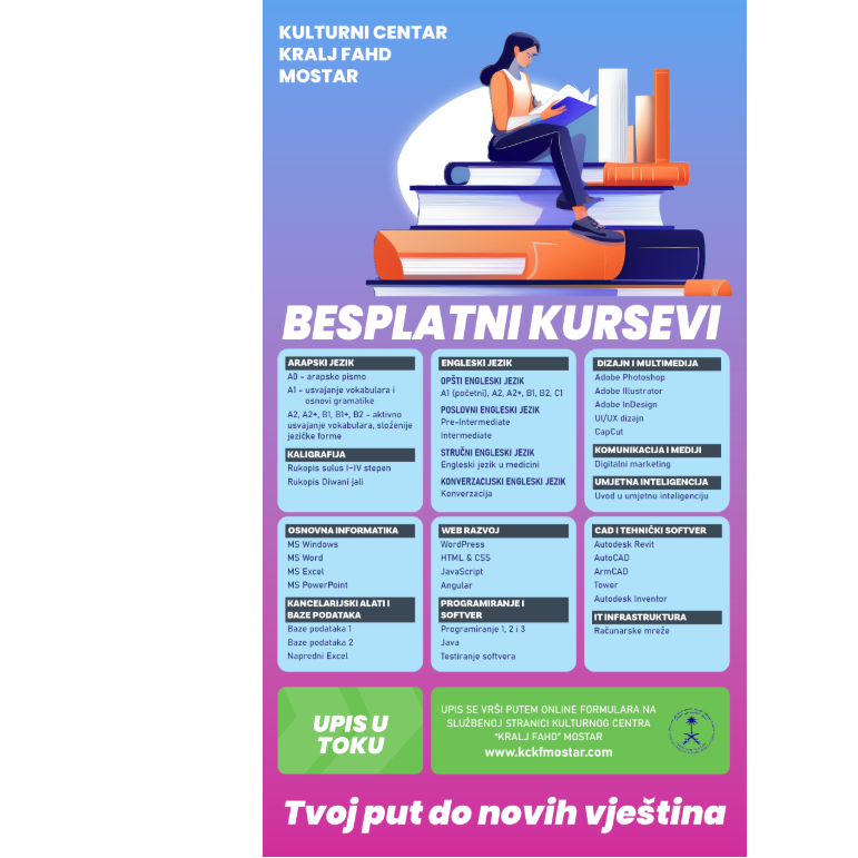 Upis na besplatne certificirane kurseve iz arapskog jezika, engleskog jezika, kaligrafije i informatike za odrasle je u toku !